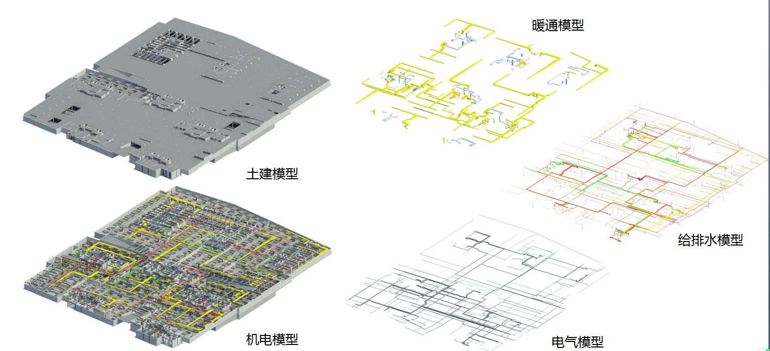 4、全專業(yè)建模 (優(yōu)點(diǎn):以三維的方式完整展現(xiàn)各機(jī)電系統(tǒng),可以審核設(shè)計(jì)的完整性和準(zhǔn)確性,解決聯(lián)系單的碎片化問題)