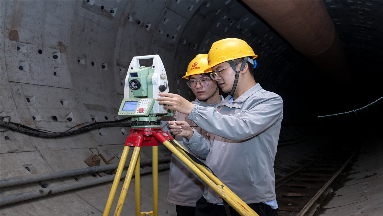杭州地鐵SG7-2標(biāo)測量員蔣建亮和孫煒正在地下作業(yè)。他們,工作時是好搭檔,下了班是好兄弟。